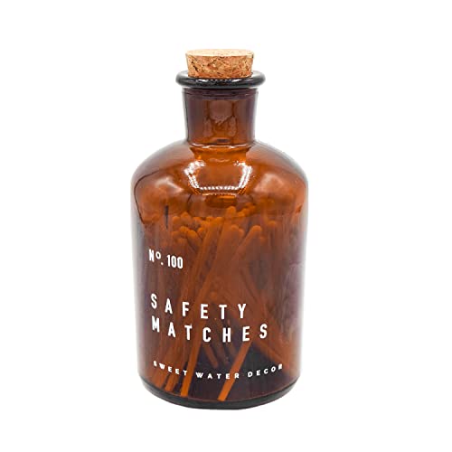 Amazon Com Sweet Water Decor 3 Safety Matches In Medium Amber Apothecary Bottle Rustic Jar Of Approx 100 Decorative Matchsticks With Strike Pad Cute Candle Accessory Match Holder With Colored Tips