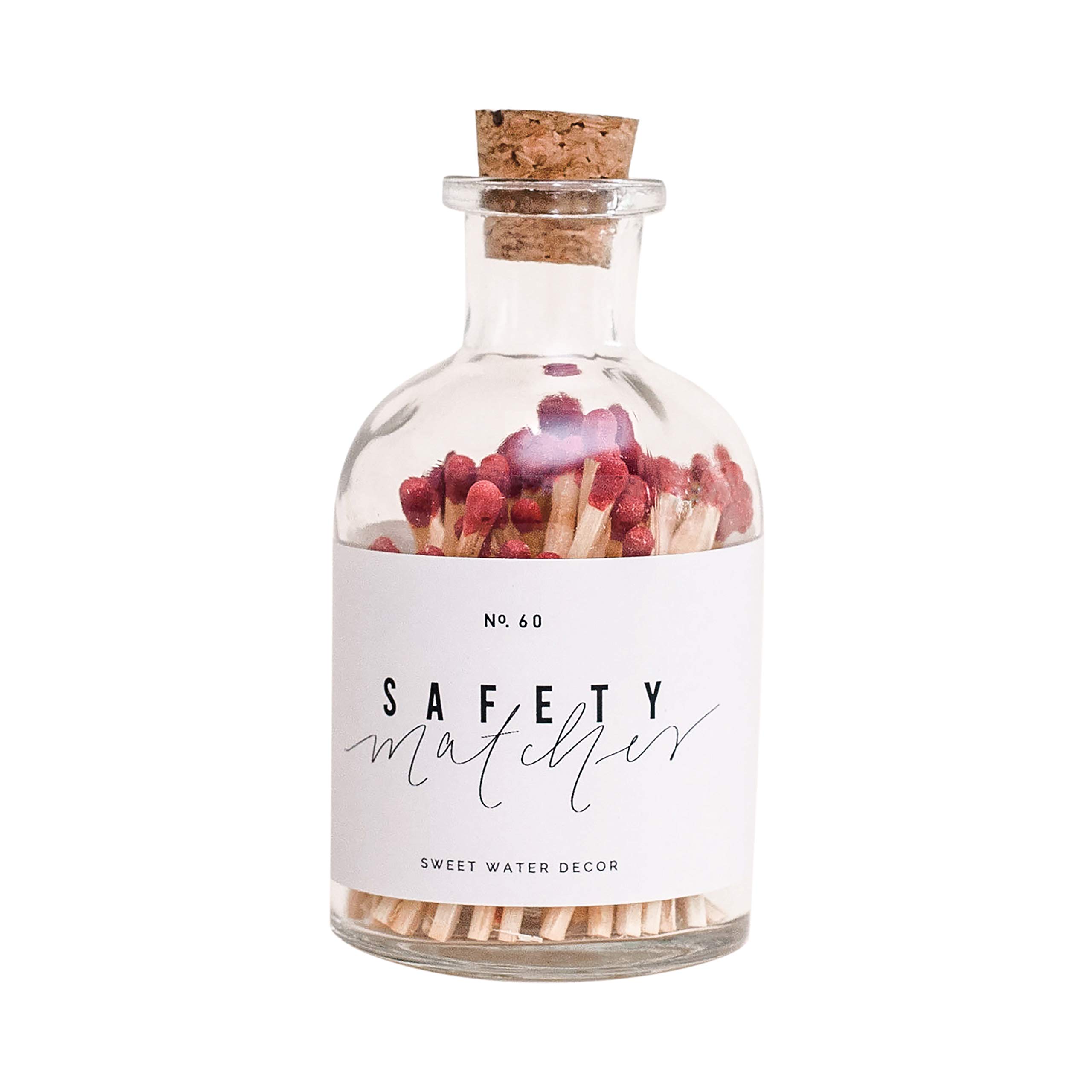 Amazon Com Sweet Water Decor 2 Small Safety Matches In Apothecary Glass Bottle Chic Rustic Jar Of Approx 60 Decorative Matchsticks With Strike Pad Cute Candle Accessory Match Holder With Colored